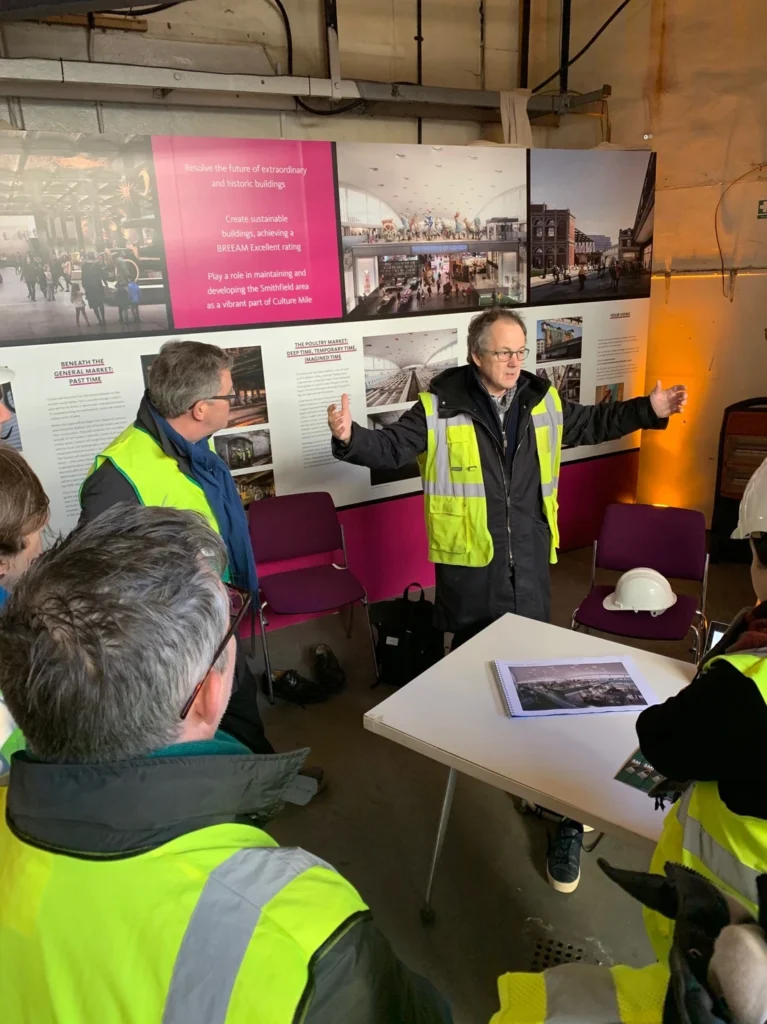 On Friday, a group of City Architecture Forum (CAF) Members were fortunate enough to tour the Museum of London’s new home at the historic West Smithfield. A planning application to support the relocation from the Museum’s current site at London Wall was submitted during December 2019 led by Stanton Williams Architects.