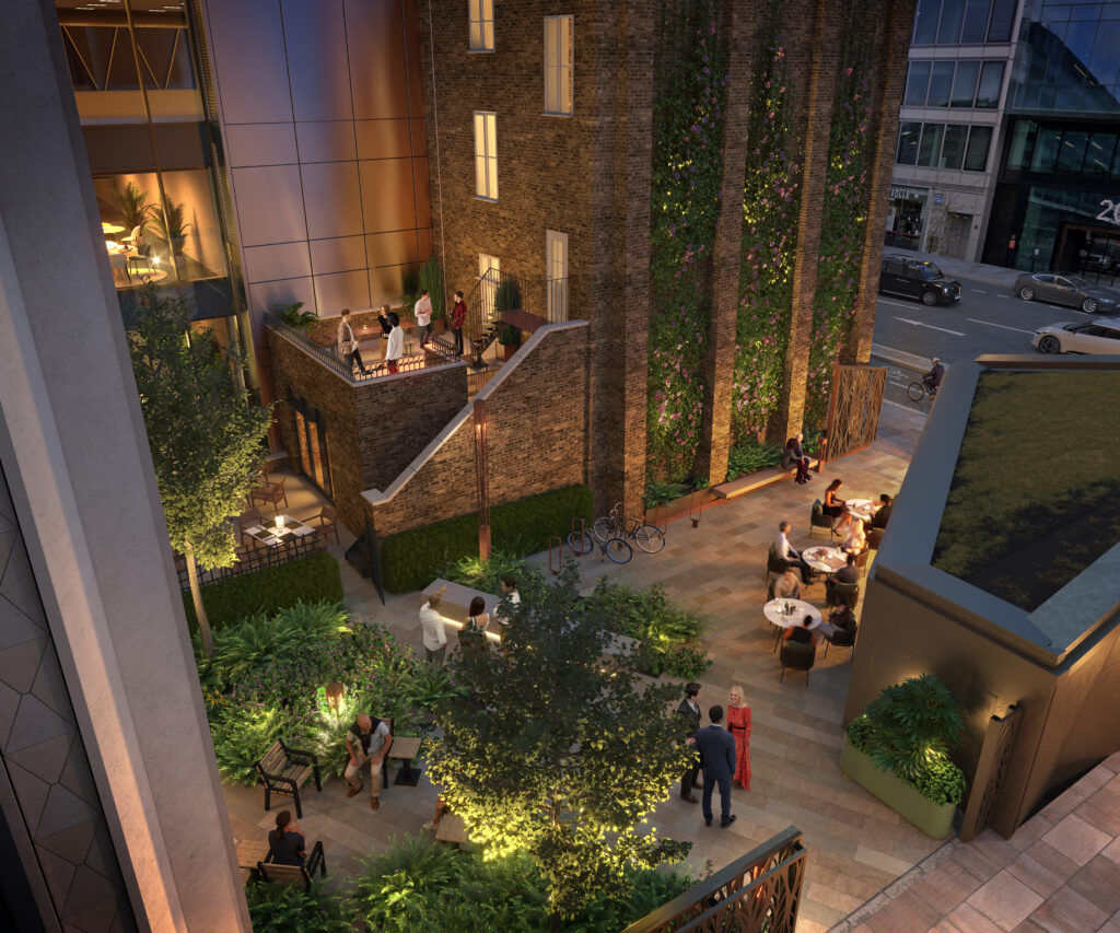 A world away from the city’ promises one of the headings on British Land’s website for its £225m, 330,000 sq ft office-led mixed-use reincarnation of the Norton Folgate site in Spitalfields that was so controversial in its nascent stages back in 2013 when AHMM prepared their first feasibility study for the developer. Planning skirmishes dated back to 1977, however, when earlier plans stirred resistance from local residents. Yet CAF members on their recent ‘Behind the Scenes’ tour of the development, whose cobbled streets and compact elements of public realm are about to open to the public, might be heard muttering ‘so what was all the fuss about?’ Maybe the ‘fuss’ influenced this sensitive outcome which appears capable of allowing new wine to be put into a handsome mix of old and new bottles in a way that will sooth local opinion. This was certainly the positive response of CAF members at first viewing of the development, which might be regarded as atypical of British Land and its varied portfolio in which historic or heritage elements have not featured prominently, other than Plantation House perhaps, now known as 30 Fenchurch Street. Norton Folgate is indeed a ‘world away’ from British Land’s neighbouring Broadgate, now being very boldly redeveloped. And although the two schemes are vastly different in scale, typology, materiality, massing, context – there are some echoes between the two. Broadgate’s success was to draw in the City’s higher economic values using a new spacious public realm to create an architecturally-branded enclave of value, replete with public art on the former Broad Street station site. Norton Folgate does something similar on a much more intimate scale, weaving revitalised and restored public realm between its six buildings. Some of this new space is semi-public and pedestrian, some is restored historic and public cobbled street. Norton Folgate slips you back into an historic series of alleys, places and streets, their interest intensified by the mix of refurbished historical and characterful new elements, mostly minimal, some more ornate. All new building components, pay homage to local scales and materialities to build a coherent overall character. The scheme applies a building-by-building approach, using restoration, refurbishment, extension, remodelling and façade retention. AHMM were masterplanners and designed three of the six buildings – Blossom Yard and Studios, Nicholls and Clarke’s new building, and Loom Court which includes a secluded internal courtyard space for office workers and restaurants. Stanton Williams, Morris + Company, and DSDHA designed Elder Yard and Studios, 15 Norton Folgate, and 16 Blossom Street respectively, with East leading the public realm strategy. DSDHA’s southern elevation to Blossom Yard features light stone cladding that catches northern light while large golden window units add elegant and unexpected opulence. Almost everwhere else, a variety of brick types and hues, is used for robustness, quality and its suitability for the Conservation Area’s character. Embedded between the new ‘tech-city’ hub of Shoreditch, about to be extended by the development of Bishopsgate Goodsyard, Norton Folgate hints at the Boho-hotel character desired by the post-Covid occupiers. Not ‘financial’ but creative professional, with hints of ‘loft’ and a clubby feel. Internally the main Blossom Yard’s building’s entrance ‘lounge’, for example, is wide, low and long, with wide composite floorboards that have a sawn timber finish (think Tate Gallery, but wider), revealed brickwork walls and a bare concrete soffit with tidy minimal services suspended. There are lots of plants and red leather perimeter benches. Very comfy, not too corporate, nor wasteful of space. Much effort and patient experimentation has clearly gone into maximising the presence of retained elements and their transformation into fully functioning spaces capable of modern occupation. Elements of facades, floors, beams, soffits, where they offer desirable character have been retained and upgraded to meet modern regulations, but keeping the ‘look’ occupiers will appreciate – and presumably pay for. A range of office types is on offer, with retail at the ground floor, and should appeal to a wide range of tenants from start-ups and SMEs to more mature organisations, including local tech and creative industries. And the very healthy pre-letting of 126,800 sq ft to law firm Reed Smith in Blossom Yard & Studios, taking a third of the space, is proof of the pudding. More natural ventilation and less sealed windows in some of the spaces would perhaps be more appropriate for today’s market, but this was not high on the agenda when the scheme was conceived pre-Covid. And some of the fantastic high-ceilinged restaurant units in the historic retained buildings will probably prefer opening windows onto those cobbled streets in warmer days, rather than the large sealed units now installed. These are minor niggles that British Land or occupiers will be able to adjust. What the team have achieved is a welcome, highly sensitive resuscitation of a site in need of renewal for many decades. Which is not to say local protestors were wrong-headed, or to deny that British Land or the entire property industry for that matter, might well have produced something of less character and value if the site had been tackled in earlier eras. It’s tempting to think Spitalfields pioneers, now affluent property owners rather than the squatters they once were, or possibly even an original Huguenot refugee, might admire the new mix of uses and spaces created that can continue Spitalfields’ traditions of a culturally diverse and industrious community pursuing a variety of enterprises – hopefully for decades to come. Lee Mallett Forum Committee Member With thanks to Peter Mayhew, Paul de Hoxar and Alireza Iravani of AHMM, and David Hills of DSDHA, for hosti