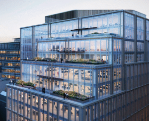 Developed in partnership with Canadian investor La Caisse and investment manager PIMCO, it is designed by architect TP Bennett, engineer Thornton Tomasetti, built by contractor MACE, and is fully let to three tenants. It was completed in July.